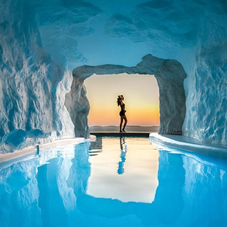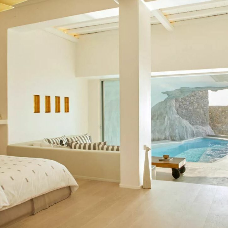 Das einzigartige Luxushotel in der Nähe der Stadt (Chora) von Mykonos wurde in eine beeindruckende natürliche Felswand gebaut. Mit seiner luxuriösen Barfuß-Chic-Ästhetik, seiner unverwechselbaren Architektur, den vielseitigen Dienstleistungen und dem Respekt für traditionelle Elemente bietet das Cavo Tagoo seinen Gästen ein unvergleichliches Erlebnis.